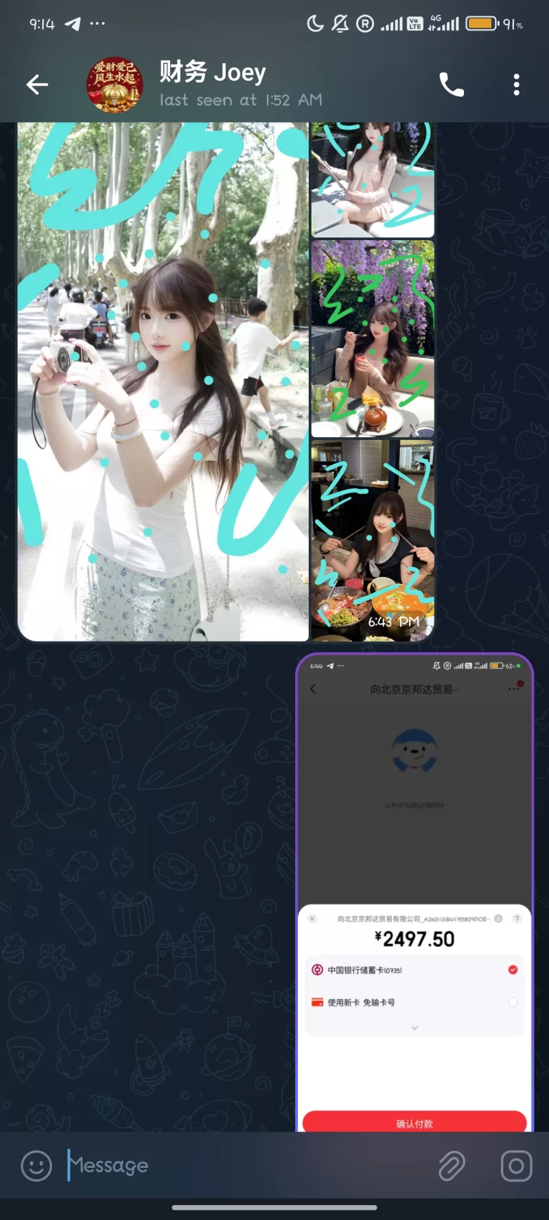 立即登录实际上是tg的一个群(图1)里面不是可以选人吗?我自己挑中一个,并且与她对话(图2),之后要求交订金,因为只是200也没在意,交就交了,之后到地方后人没见到,又再交了600的后续费用,这时候我以为可以一睹真容了,实际上并非,见面还要再交tm的2000不内射保证金.嗯?我当时就觉得不对劲了,你之前又不说,之后就是各种扯皮(见到人后再给钱一类的)